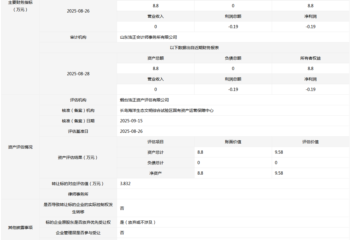 萊州市海之運(yùn)石油化工有限公司33.3333%國有股權(quán)